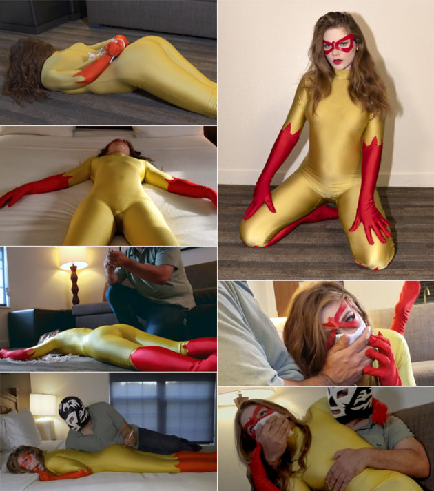 Misty Lovelace as Firestar is captured by the Trickster so he can continue to perfect his sleepy traps for superheroines. Firestar, meanwhile, wants a rematch with the Trickster for the way he humiliated her last time. It’s safe to assume that Firestar won’t get her way and is soon put through a myriad of sleep traps including electro net, chloroform, and injection. Trickster gets cute with his overpowered opponent and decides to do a selfie chloro. Firestar is kept dazed and confused throughout her uphill battle with the Trickster. Will she overcome the villain’s tricks or will this rematch end the same way the first one did. Find out in this brand new episode.