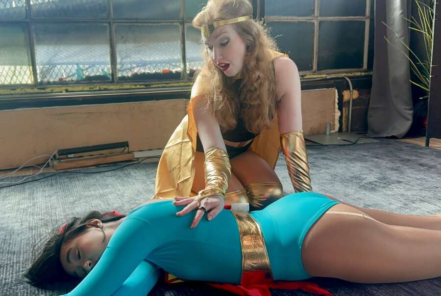In this story: Megagirl investigates a team up of her two most dangerous enemies, Vex Vader and Veda Vega! She soon encounters their creation in Mega Queen. This new villainess has all Megagirl’s powers but amplified! Our heroine is easily overwhelmed by Mega Queen and becomes the subject of her pleasure ! Megagirl is pummeled, de-booting, partial costume removal, groping, throat lift/choking, bearhugs and limp play.